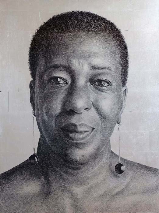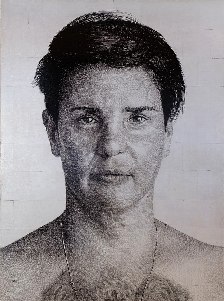 2018-2021. Dessin à la pointe sèche sur feuilles d'argent, 100 x 75 x 2 cm. Collections particulières
